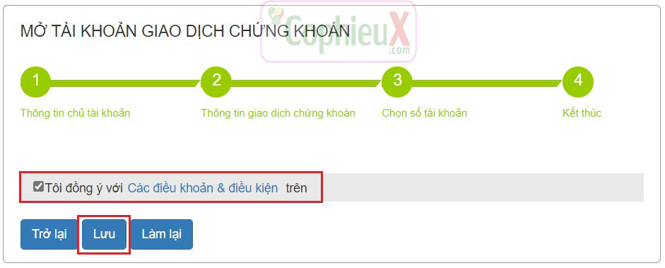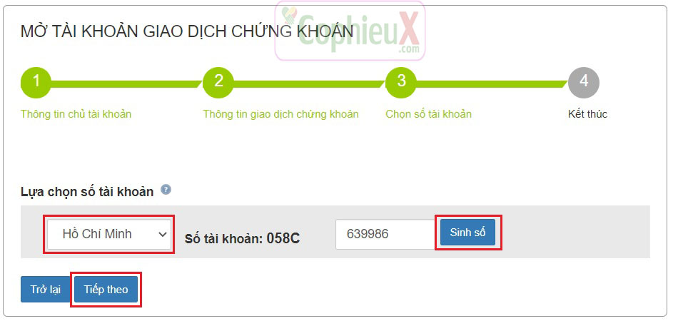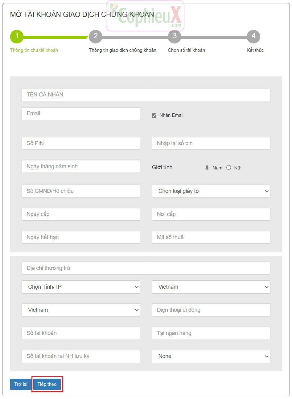 Sau đó Click Mở tài khoản để chuyển sang bước tiếp theo.