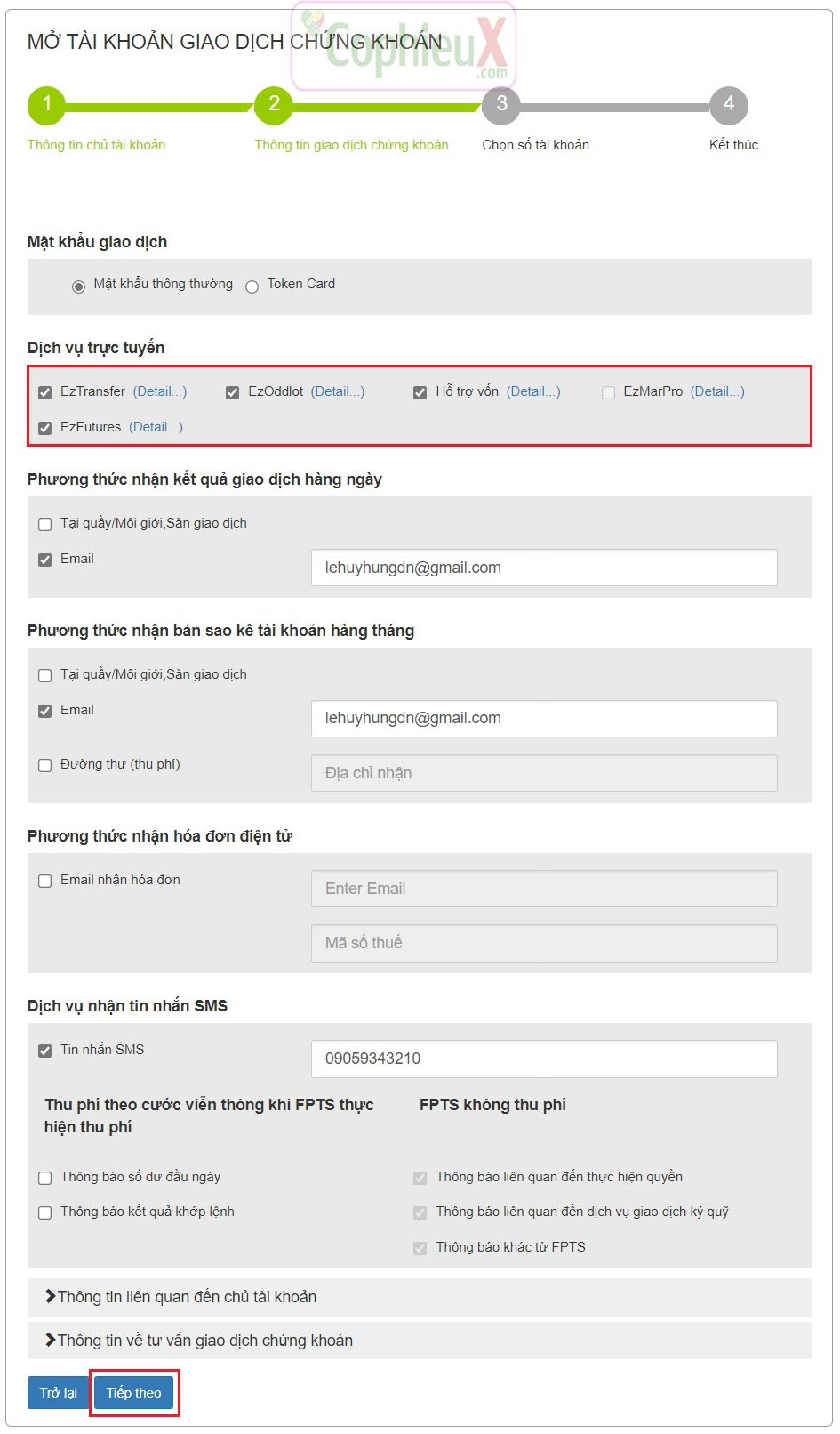 4.2 Mở tài khoản chứng khoán FPTS qua website