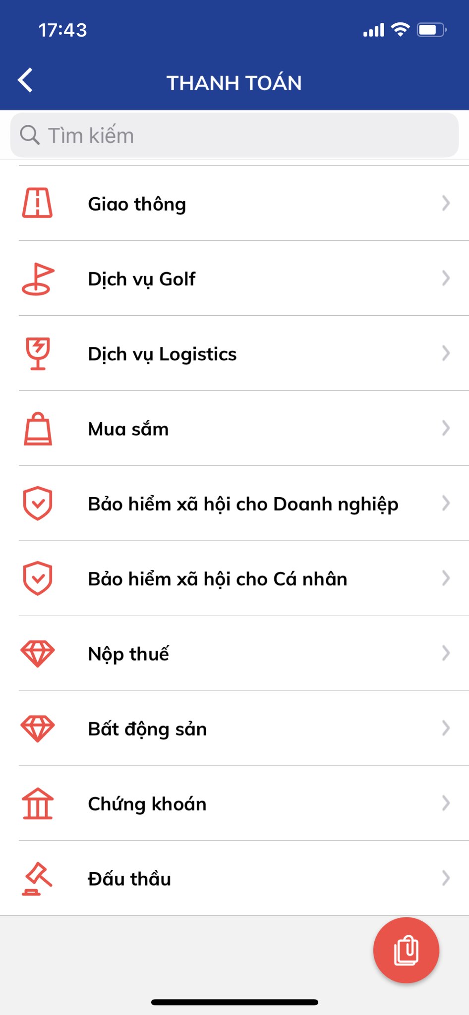 Bước 3: Ở chức năng Thanh toán, Chọn Chứng khoán