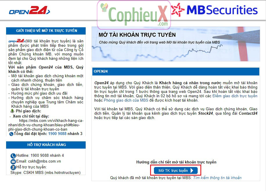 Để mở tài khoản tại MBS, Quý khách vui lòng truy cập vào website https://open24.mbs.com.vn hoặc TẠI ĐÂY