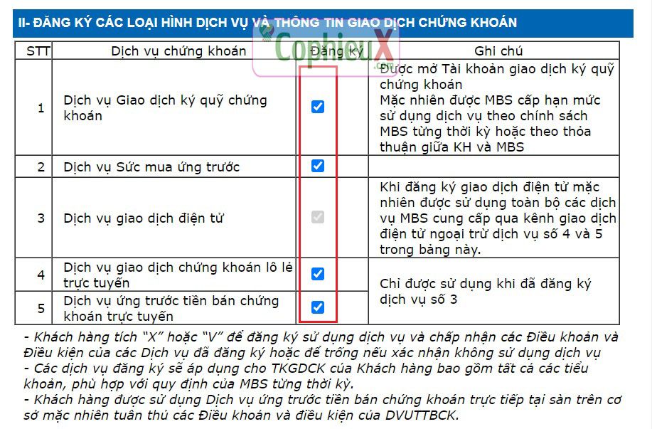 - Dịch vụ giao dịch điện tử (giao dịch trên website MBS hoặc app MBS trên smartphone)