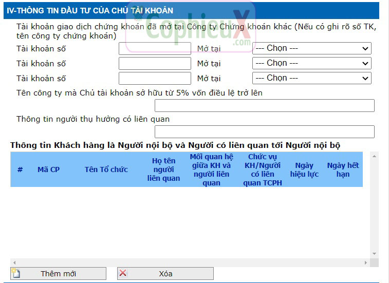 Mục 4: Thông tin đầu tư của chủ tài khoản