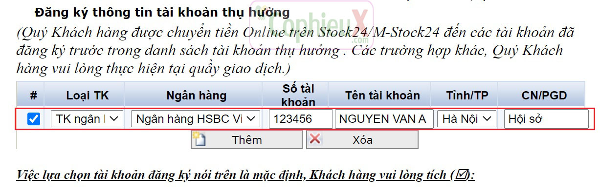 5.1 Nộp tiền vào tài khoản chứng khoán