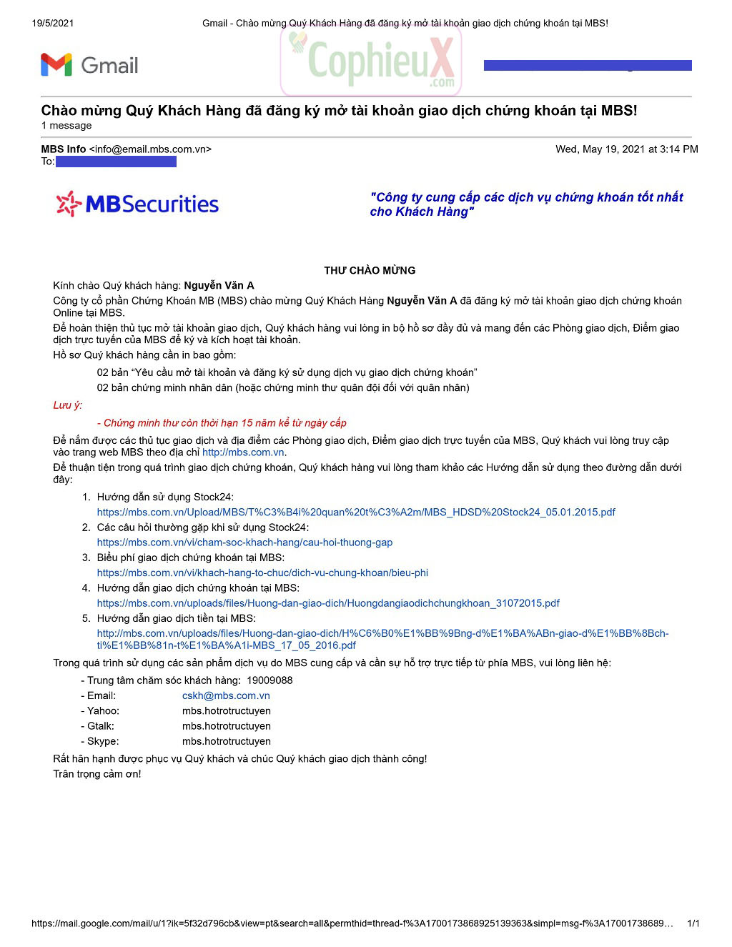 Chúc mừng quý khách đã mở thành công tài khoản chứng khoán MBS!