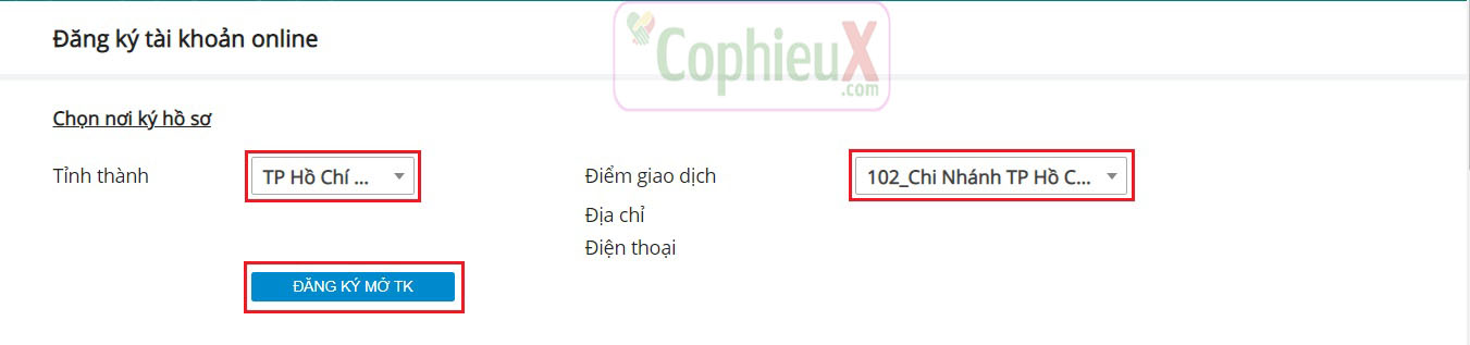 Sau đó, Click ĐĂNG KÝ MỞ TK