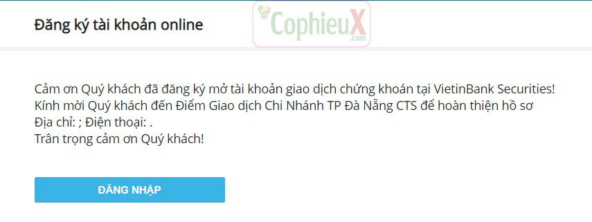 Chúc mừng quý khách đã mở thành công tài khoản chứng khoán Vietinbank!