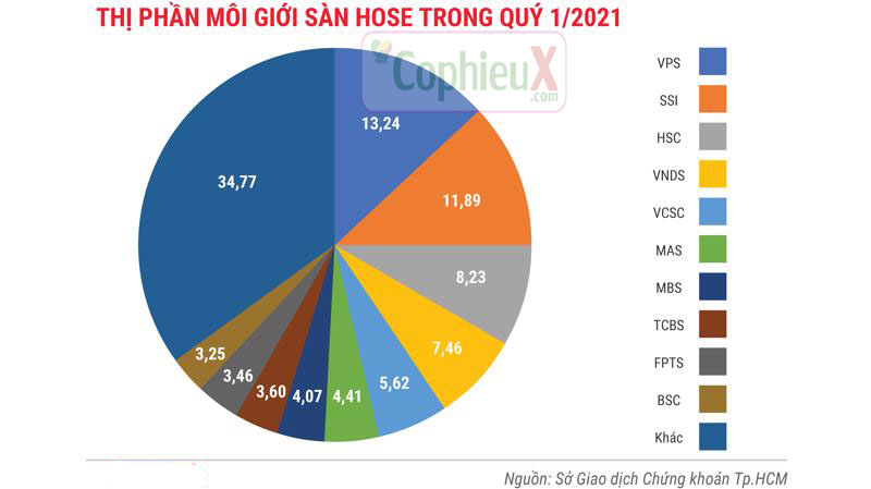 Thị phần môi giới chứng khoán sẽ do HOSE và HNX công bố thông tin. Thị phần môi giới là một tiêu chí quan trọng tuy nhiên nó cũng rất là ảo so với chỉ tiêu doanh thu và lợi nhuận là những con số thực tế.