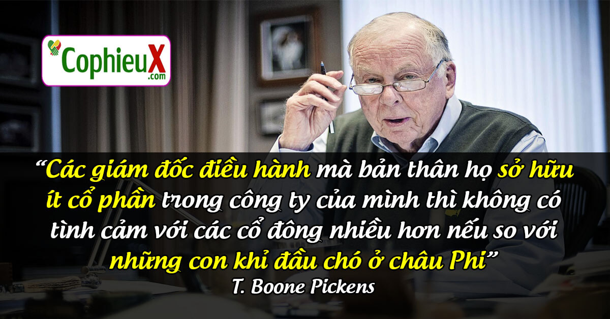“Các giám đốc điều hành mà bản thân họ sở hữu ít cổ phần trong công ty của mình thì không có tình cảm với các cổ đông nhiều hơn nếu so với những con khỉ đầu chó ở châu Phi.” T. Boone Pickens