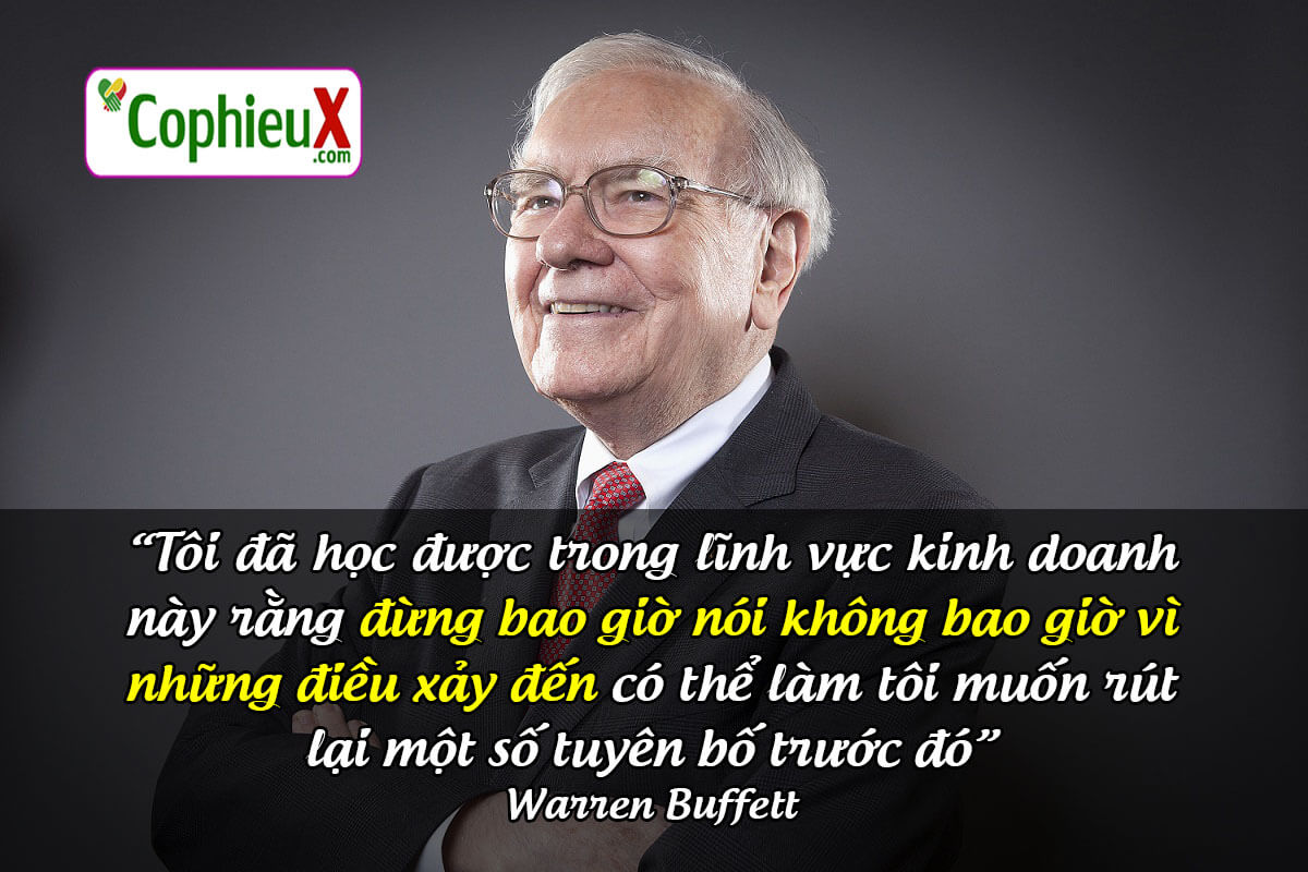 “Tôi đã học được trong lĩnh vực kinh doanh này rằng đừng bao giờ nói không bao giờ vì những điều xảy đến có thể làm tôi muốn rút lại một số tuyên bố trước đó”. Warren Buffett