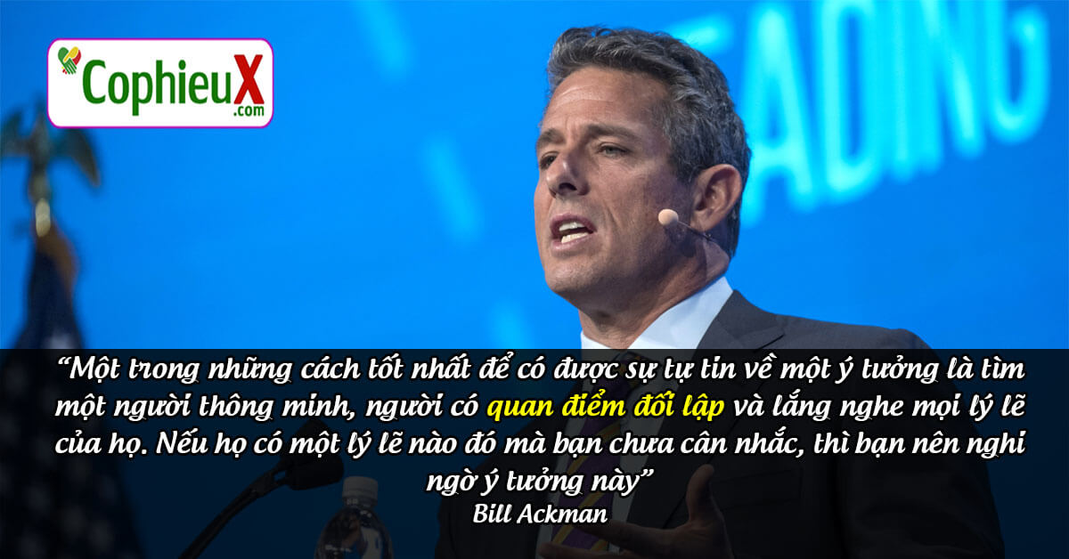 “Một trong những cách tốt nhất để có được sự tự tin về một ý tưởng là tìm một người thông minh, người có quan điểm đối lập và lắng nghe mọi lý lẽ của họ. Nếu họ có một lý lẽ nào đó mà bạn chưa cân nhắc, thì bạn nên nghi ngờ ý tưởng này.” Bill Ackman