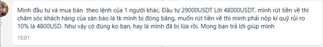 Khi Ngọ viết bài này, có người bị dính vụ trên và liên hệ hỏi Ngọ, là đầu tư 29.000 USD – lãi 48.000 USD – khi rút tiền về thì tài khoản đóng băng, và phải nộp thêm tiền ký quỹ 10% là 4.800 USD.