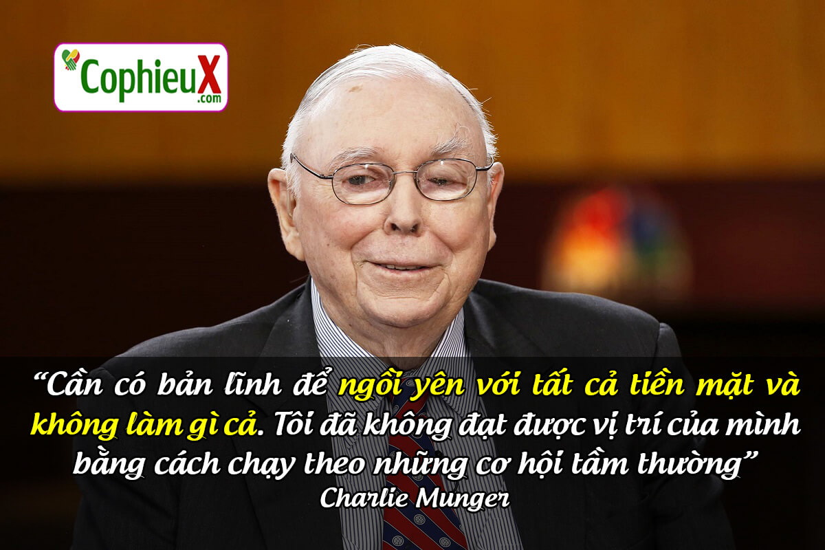 “Cần có bản lĩnh để ngồi yên với tất cả tiền mặt và không làm gì cả. Tôi đã không đạt được vị trí của mình bằng cách chạy theo những cơ hội tầm thường ”. Charlie Munger