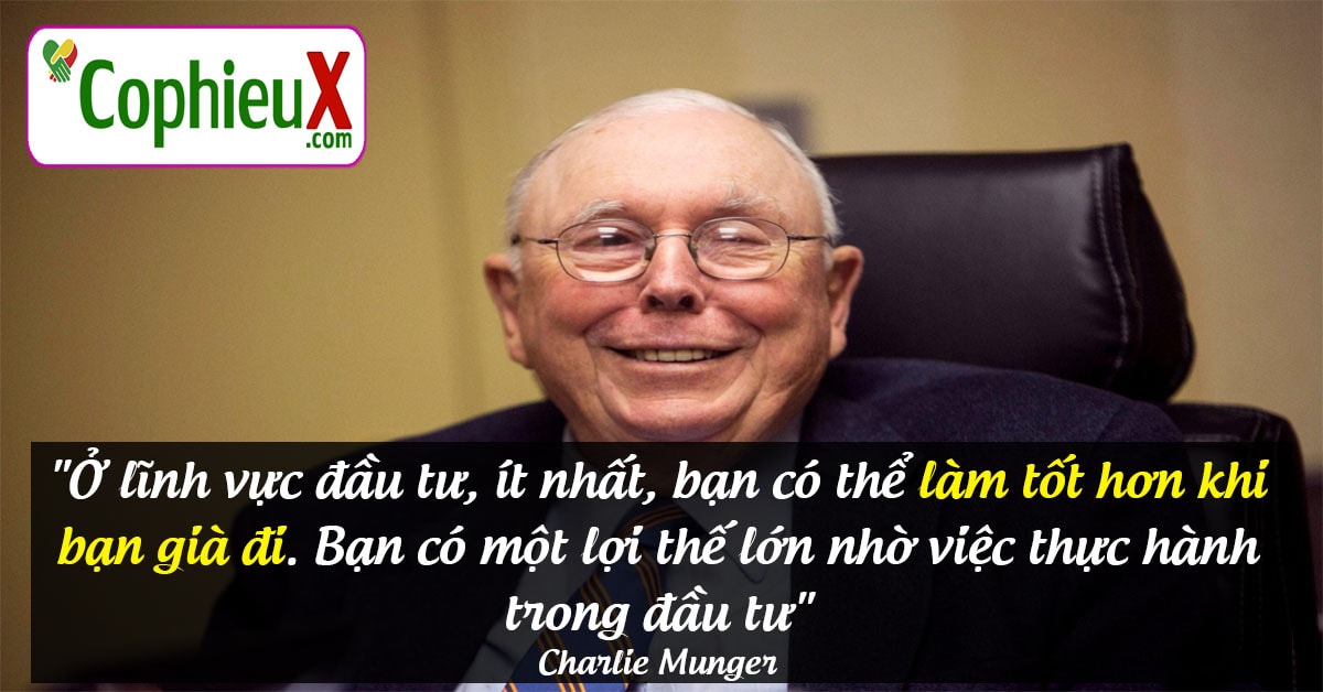 “Ở lĩnh vực đầu tư, ít nhất, bạn có thể làm tốt hơn khi bạn già đi. Bạn có một lợi thế lớn nhờ việc thực hành trong đầu tư.” Charlie Munger